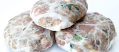 De diferentes tipos: mezcla de carne de cerdo y ternera, 100 % carne de ternera, 100 % carne de pollo, etc. Muy jugosas y de sabor intenso y característico.